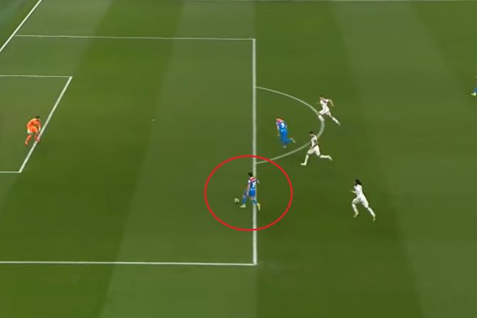 Ne samo da nije završio napad u momentu kada je mogao da šutira, već nije ni dodao saigraču, koji je takođe imao otvoren pogled ka golu. Zatim se spetljao nakon što je uradio "lažnjak" i rivali su stigli da ga izblokiraju.