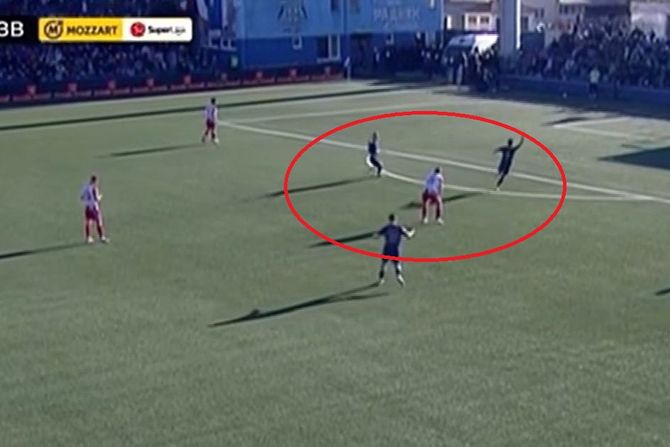 Ne radi se ovo u fudbalu, poznato je to svima, ali je trenutak nepažnje primorao Elšnika da dodavanje pošalje u okvir gola, što se na kraju ispostavilo kao kardinalnom greškom i autogolom.