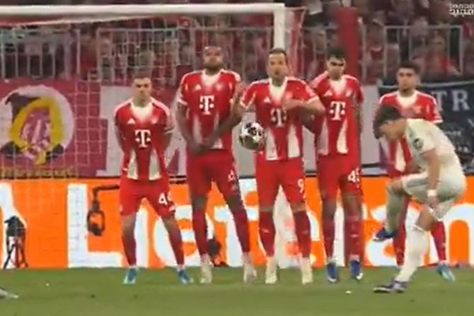 Dosuđen je prekršaj za Real Madrid na oko 25 metara, namestio je loptu i uhvatio kratak zalet.