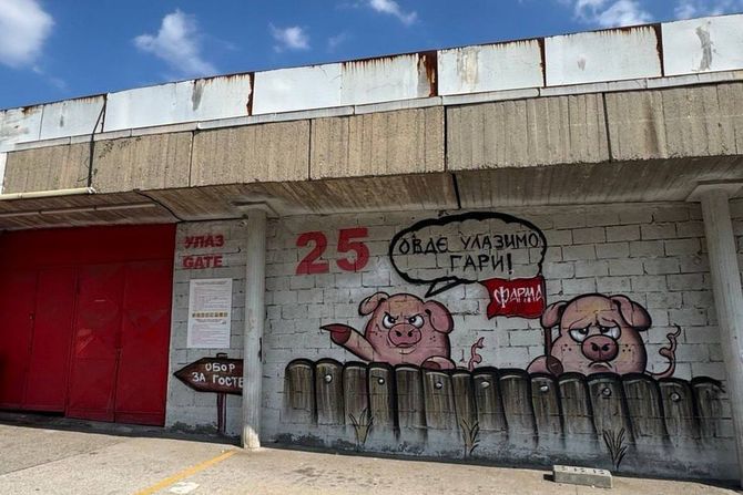 Naime, Delije su nacrtale obor sa svinjama, a uz to, nacrtali su zastavu Novosađana, ali sa natpisom "Farma", aludirajući tako na to što najpoznatiji balkanski influenser, Baka Prase, sarađuje sa novosadskom "Starom damom" i dolazi na mečeve.