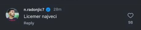- Ja da plačem. Pa red je i da "najveći" osvoji nešto - napisao je Radonjić.