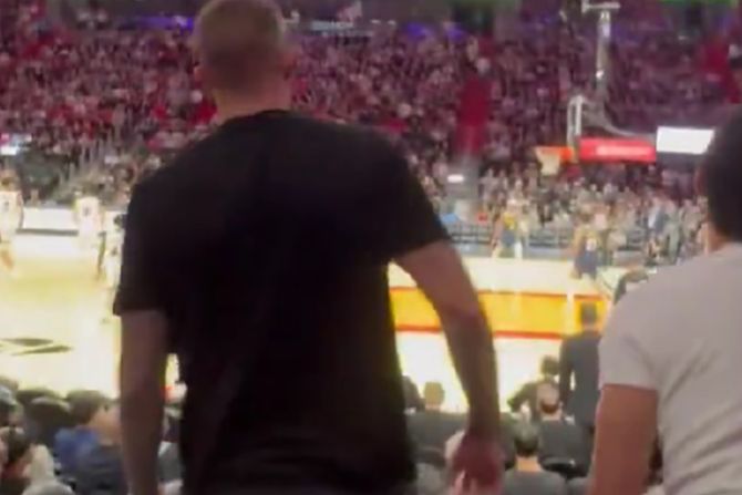 Na tribinama je slučajno usnimljen momenat kada je Nemanja Jokić, Nikolin brat, primetio da najbolji košarkaš sveta leži na parketu.