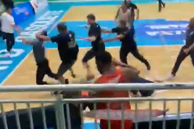 Skandalozne scene obeležile su kraj utakmice Prve lige Brazila u košarci (NBB) između Pato Basketa i ekipe Kaksijas do Sul odigrane u noći između petka na subotu po našem vremenu, a koja je završena trijumfom gostiju rezultatom 85:91 posle dva produžetka.