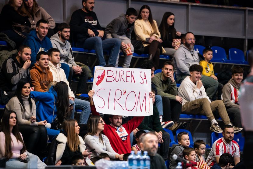 Naime, jedan od navijača doneo je u dvoranu transparent na kojem su bili iscrtani grb Crvene zvezde, ali i natpis: "Burek sa sirom", o čemu se uvek vodi večita dilema - da li on zapravo postoji ili se samo zove "sirnica", kako bi to rekli sa druge strane Drine.