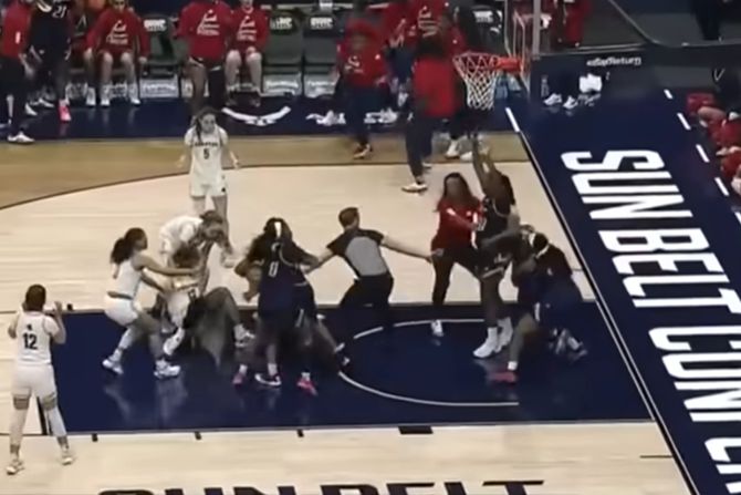 Utakmica Kostal Karolina - Južna Alabama obeležena je žestokom tučom dve ekipe, a devojke se nisu libile da povrede jedna drugu u ovom okršaju NCAA košarke.