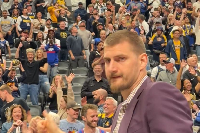 Nikola Jokić nije bio u sastavu Denver Nagetsa za meč protiv Oklahoma Siti Tandera, ali je i pored toga privukao veliku pažnju u „Bol areni“. Srpski as se pojavio u ljubičastom odelu, a u ruci je nosio loptu – nagradu koju je kasnije poklonio jednom mladom navijaču.