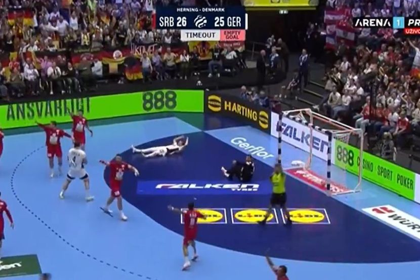 Delovalo je da Nemci neće realizovati napad, a onda je jedan od njihovih rukometaša ipak uspeo da se izbori za šut i na kraju zatrese mrežu, ali mu gol ipak nije priznat, a za sve je kriv selektor Nemačke, Alfred Gislason.