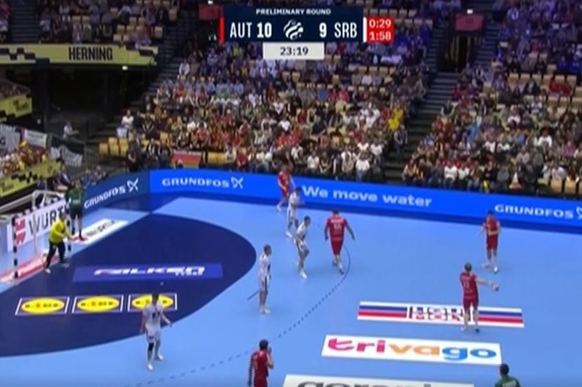 Na poluvremenu između Srbije i Austrije naša selekcija vodi, a moglo je da bude i ubedljivije da je Ilić realizovao sedmerac na nekoliko sekundi do kraja prvog dela.