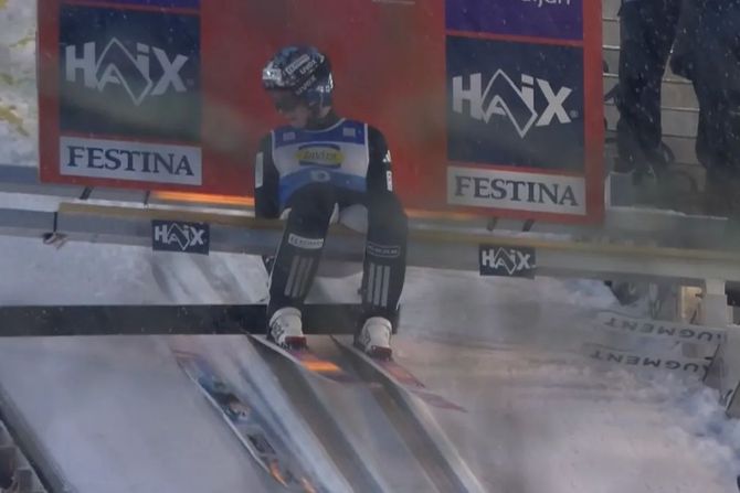 Naime, verovatno prvi put u istoriji viđeno je da je nekom od skakača poletela skija pre nego što je on skočio, i to baš najboljem.
