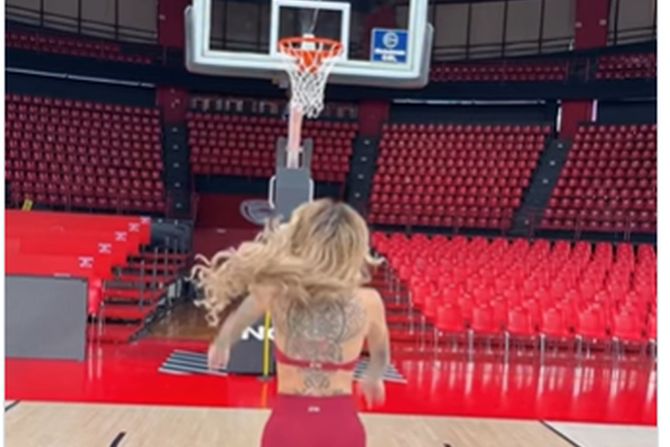 Najlepša žena košarkaša uzela loptu u ruke: Istetovirana lepotica se utegla, pa obrukala, ali je prizor divan