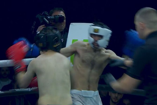 Krenuo je Mihajlo Madić na isti način, ali se oseća njegov umor. Nema toliko strategije, kakav udarac. Čak je Mihajlo krenuo i nogom, zaustavio je to sudija odmah. Dogodio se i pad, a Madić nastavlja. Čini se da mu je pripala ova drga runda.