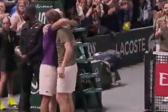Na kraju je usledio emotivan trenutak, francuski teniser nije mogao da sakrije emocije, a onda je došlo do zagrljaja dvojice tenisera gde je Dimitrov, takođe, pokazao koliko mu je teško pao odlazak još jednog kolege u penziju, posebno što je bio akter njegovog završnog plesa.
