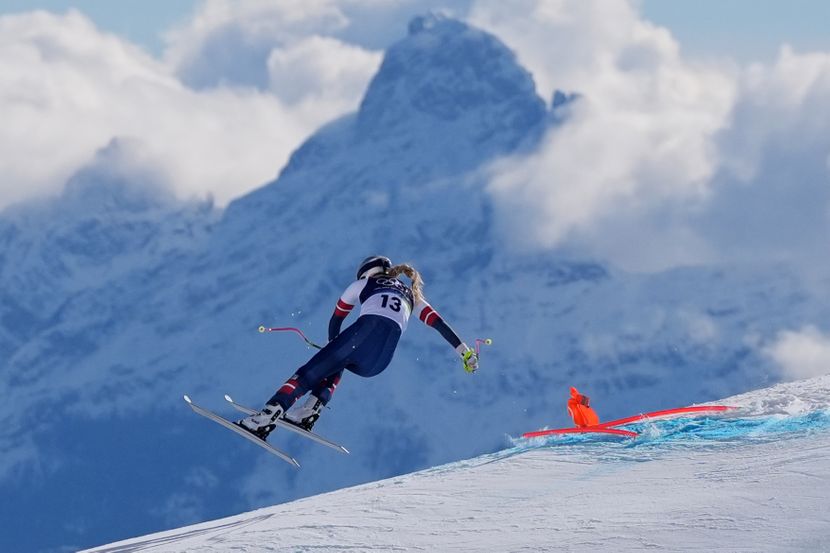 U toku je takmičenje u spustu koje je počelo u 11 časova i 30 minuta, gde skijašice mogu da dostignu brzinu od 150 kilometara na čas. Na stazi punoj rupa i uzvišenja Amerikanka je izašla kao 13. na po redu.