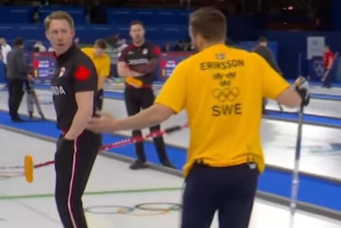 Tokom meča između Kanade i Švedske, viđen je preokret nakon što јe švedski karling igrač optužio Kanađanina Marka Kenediјa za varanje.