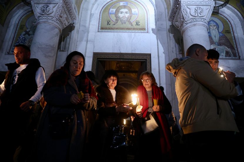 U Hramu Svetog Save u Beogradu sinoć je, pre ponoćne vaskršnje liturgije, vernicima podeljen plamen Svetog i blagodatnog ognja sa Hristovog groba u Jerusalimu.