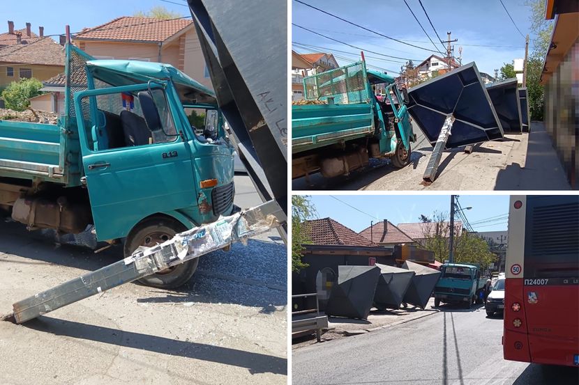Horor u Kaluđerici: Kamion udario u autobusko stajalište, "pečurka" srušena, ima povređenih