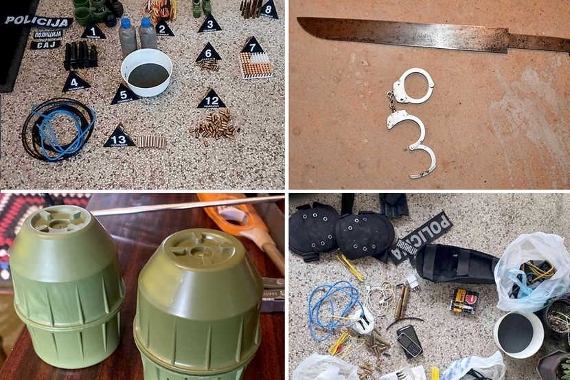 Oduzete su dve ručne bombe, dve kutiјe za ručne bombe, јedna mačeta, 5 pištoljskih okvira, preko 200 komada pištoljske i puščane municiјe različitog kalibra,10 komada čaura, elektronske kapisle, dva mobilna telefona, tri policiјske oznake, službena legitimaciјa MUP-a, dva para službenih lisica, јedna gas maska, beretka sa srpskim grbom i više komada voјne garderobe.
