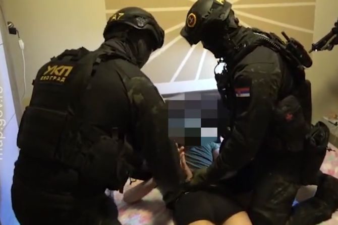 Na snimku hapšenja koji je objavilo Ministarstvo unutrašnjih poslova vidi se trenutak kada pripadnici Uprave kriminalističke policije ulaze u stan osumnjičenog i zatiču ga dok spava. Nakon toga, oni ga okreću na stomak, savijaju mu ruke iza leđa i stavljaju mu lisice.