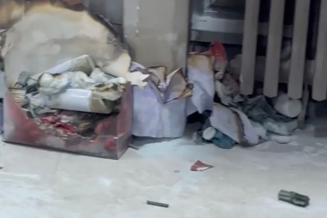 "Prizor je potresan. Prozori su ostali otvoreni kako bi se izluftirao gust dim koji je pokuljao nakon aktiviranja pirotehničkih sredstava. Tragovi čađi jasno ukazuju na to da je unutra došlo do ozbiljnog zapaljenja pre nego što je devojka skočila", javljaju naši reporteri.