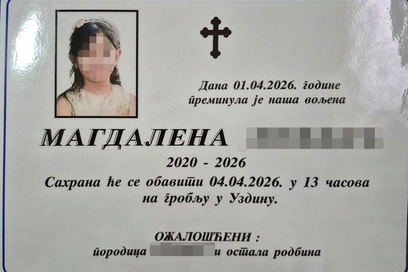 Magdalena L. (5) koja je preminula nakon višednevne borbe za život nakon što je kuću u kojoj je živela sa porodicom u Pančevu progutao požar, biće sahranjena u subotu u 13 časova na groblju u Uzdinu.
