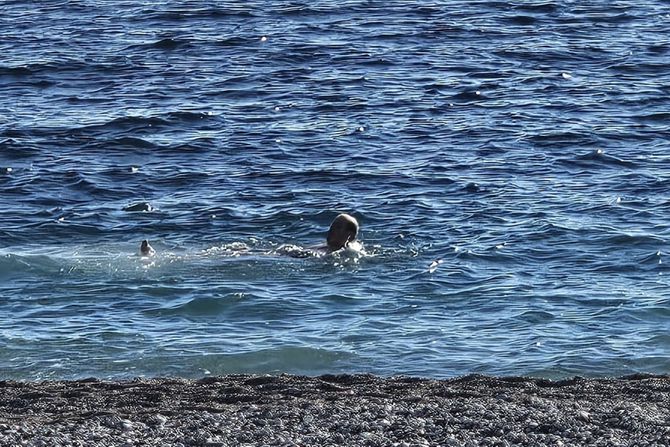 - Nisam verovao šta vidim svojim očima. Čovek se brčkao i uživao kao da je jul, a prethodnih dana je bilo jako hladno i na primorju pa pretpostavljam da je voda bila ledena. Ali, izgleda da to nije smetalo - kaže za RINU jedan od meštana.
