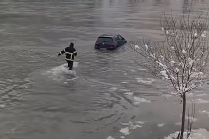 Usred haosa, ceo Zvornik, ali i region pišu o vatrogascu koji je izvukao automobil iz ledene Drine.