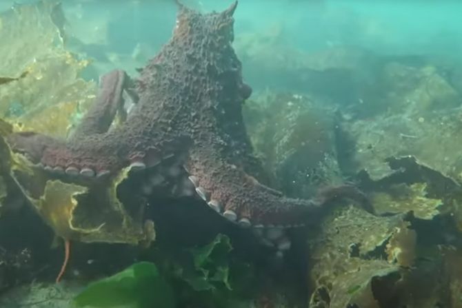 Podvodni ribolovac Ante Klobučar iz Splita u utorak je imao nesvakidašnji ulov, prenosi Dnevnik. On je dšao je na svoje skriveno mesto na Hvaru, odnosno mesto gde se skupljaju ribe, i posrećilo mu se. Naletio je na hobotnicu veliku gotovo kao i on sam, a visok je kako kaže, 181 cm, piše Morski.hr.