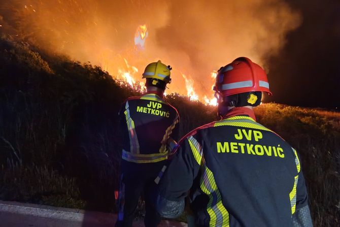 Pred vatrogascima je još jedna teška i burna noć. Na terenu su Javna vatrogasna služba Metković i DVD Kula Norinska, koji ulažu maksimalne napore kako bi obranili područje i sprečili dalje širenje vatre.