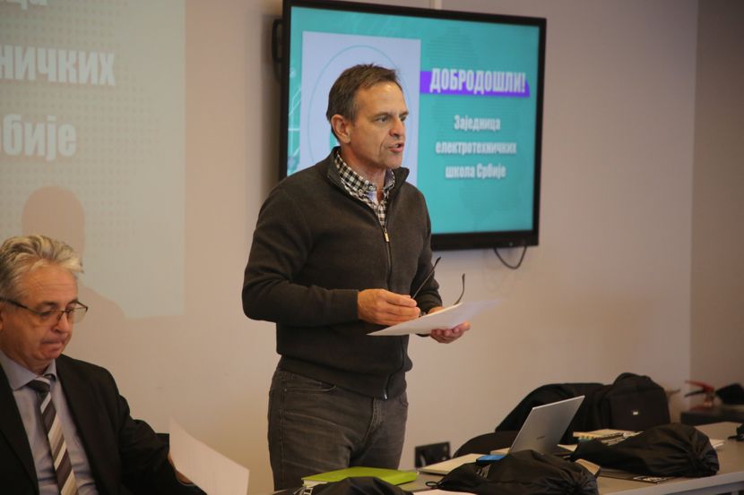 Sekretar Zajednice elektrotehničkih škola Srbije, Goran Stanković, zahvalio se Srednjoj školi za informacione tehnologije, Visokoj školi strukovnih studija informacionih tehnologija i Comtrade-u na gostoprimstvu i rekao da je jedan od današnjih ciljeva sastanka informisanje škola članica o aktuelnostima u srednjem stručnom obrazovanju.