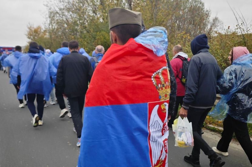 Pešaci sa Kosova u Metohije ne odustaju uprkos kiši i vetru: Približavaju se Lazarevcu
