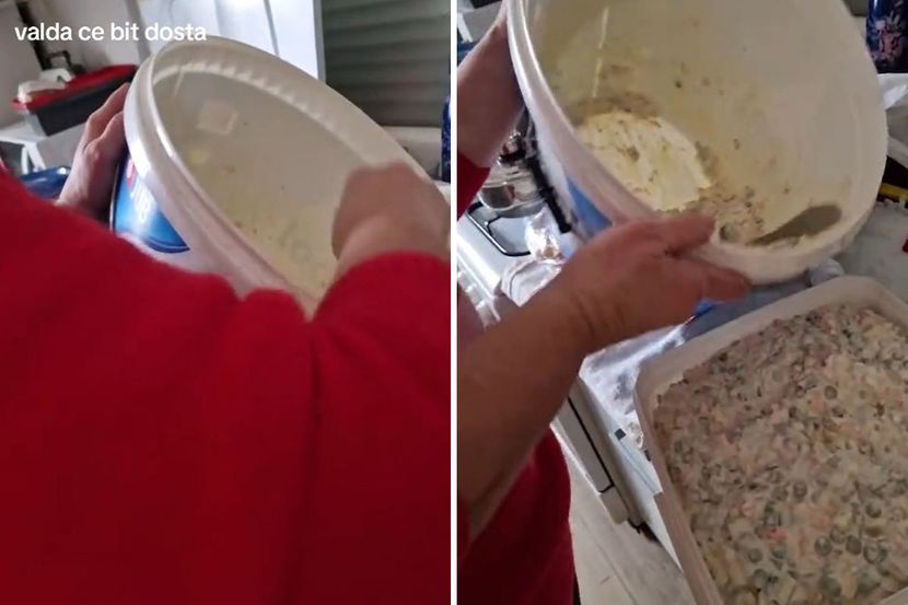 Dok se većina oslanja na šerpe, činije ili namenske plastične posude, jedna korisnica TikToka otišla je korak dalje i izazvala pravu buru na društvenim mrežama. Ona je pokazala kako desetine kilograma ove salate skladišti u praznoj Jupol kanti od 15 litara, koja inače služi za zidne boje.