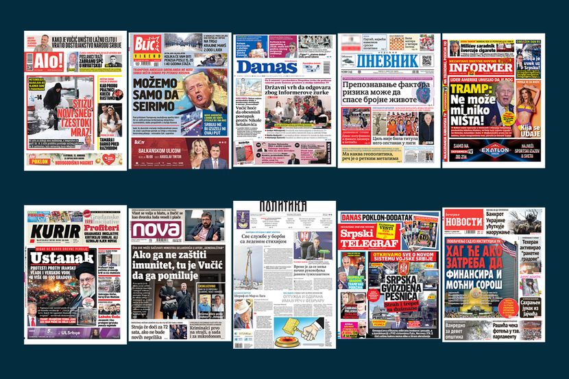 NASLOVNE STRANE DANAŠNJIH NOVINA: Prelistavanje štampe za nedelju, 11. januar 2026. godine