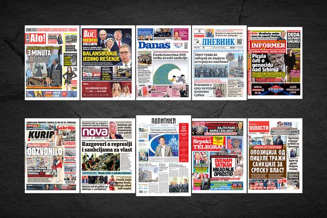 NASLOVNE STRANE SUTRAŠNJIH NOVINA: Prelistavanje štampe za subotu, 24. januar 2026. godine