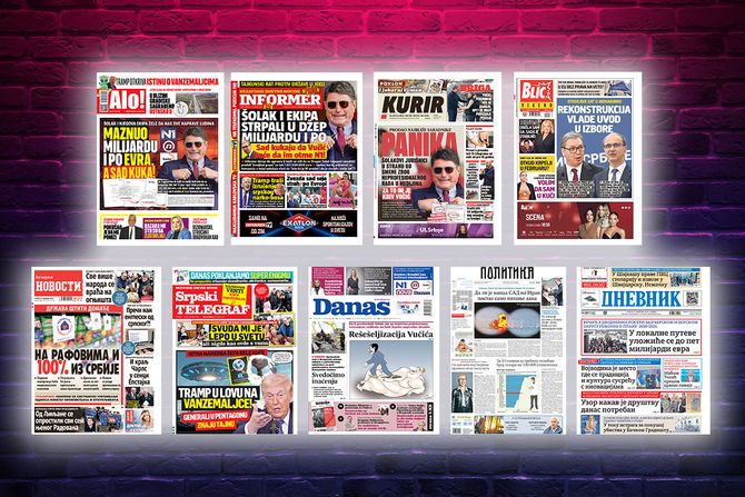 NASLOVNE STRANE SUTRAŠNJIH NOVINA: Prelistavanje štampe za subotu, 21. februar 2026. godine