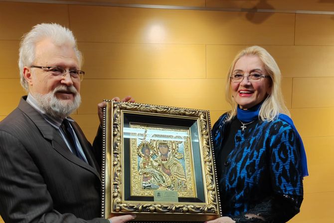 "Dozvolite mi da vam, u ime Fondacije Braća Karić i Pećke Patrijaršije, predam ovaj dar - ikonu Presvete Bogorodice, kao znak dubokog poštovanja i blagodarnosti, ali i kao molitvenu želju da Matica srpska i u vekovima koi dolaze, ostane mesto sabornosti, mudrosti i stvaralaštva, da čuva, sabira i nadahnjuje sve koji u njoj stvaraju i služe narodu. Srećan i blagosloven veliki jubilej!", zaključila je gospođa Karić.