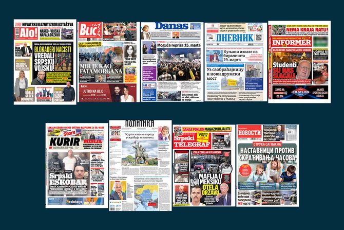 NASLOVNE STRANE SUTRAŠNJIH NOVINA: Prelistavanje štampe za utorak, 24. februar 2026. godine