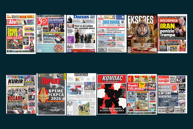 NASLOVNE STRANE DANAŠNJIH NOVINA: Prelistavanje štampe za četvrtak, 9. april 2026. godine