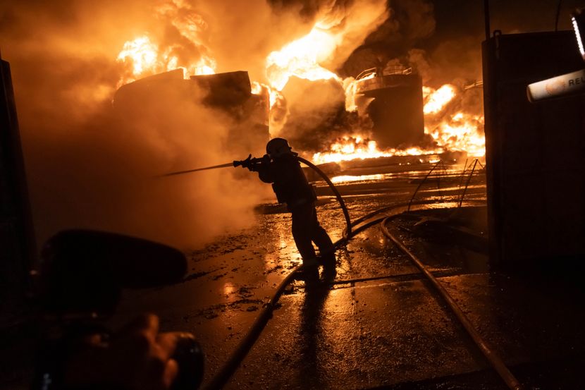 Prema njegovim rečima, oštećeno je najmanje 10 civilnih automobila, kao i obližnja stambena zgrada, a zapaljene su garaže i krov poslovnog objekta.