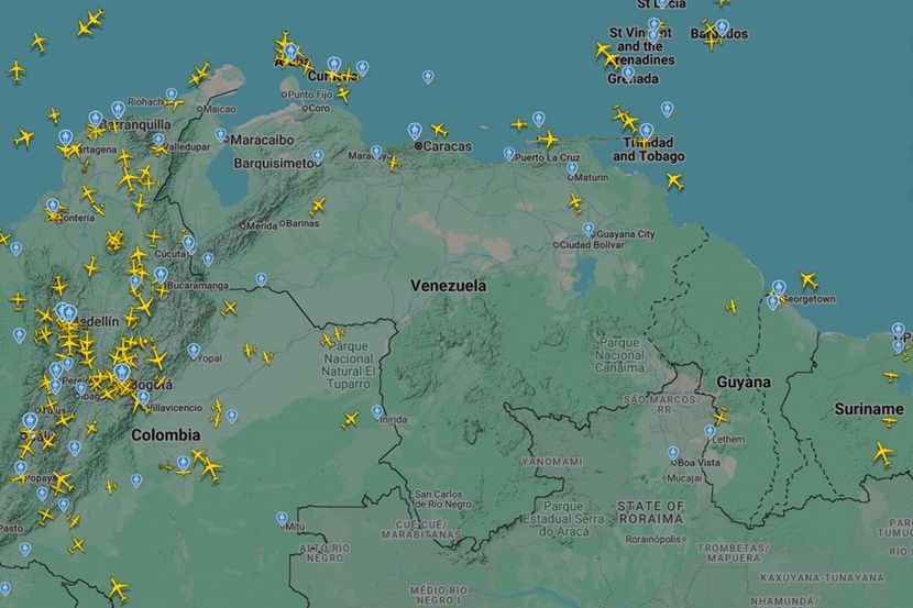 Trenutno, prema podacima Flightradar-a, praktično nema aviona u venecuelanskom vazdušnom prostoru.