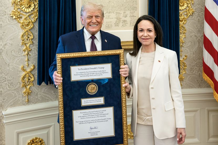 "Mislim da je danas istorijski dan za nas Venecuelance", rekla je nakon prvog ličnog susreta s Trampom. Nije odgovorila na pitanje da li je američki predsednik zadržao medalju.