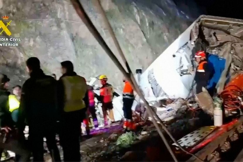 Područje je obeleženo policijskim brojevima incidenta dok ga fotografišu forenzički inspektori. Španski premijer Pedro Sanchez i španski ministar saobraćaja Oskar Puente jutros su posetili mesto nesreće.
