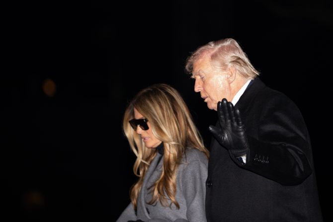 Fotografije pokazuju kako prva dama korača po pisti i ulazi u helikopter Marine One noseći velike, kockaste sunčane naočare, uprkos potpuno tamnom noćnom nebu. Kada je kasnije izašla iz predsedničkog helikoptera na travnjaku Bele kuće, ona je pogled i dalje skrivala iza naočara.