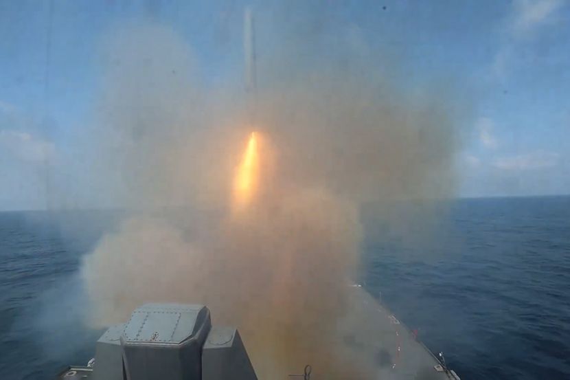 Na snimcima se vidi lansiranje krstarećih raketa sa ratnog broda i poletanje borbenih aviona sa nosača aviona, ali i kako rakete pogađaaju mete među kojima su dron na zemlji i lansirne rampe.