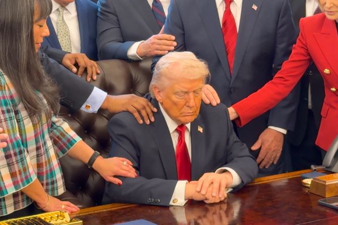 Nesvakidašnij prizor snimljen je u Ovalnoj kancelariji Bele kuću u jeku sukoba na Bliskom istoku. Naime, pojavio se snimak na kojem se vidi američki predsednik Donald Tramp, okružen liderima evangelističke crkve koji se mole za njega i za uspeh SAD u ratu protiv Irana.