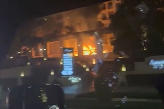 JEZIV SNIMAK Dron pogodio hotel gde su smeštene ambasade EU u Bagradu: Posle eksplozije izbio požar