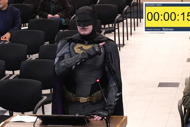 Nakon toga, "Betmen" je uz aplauz prisutnih napustio salu, dok su mu članovi gradskog veća zahvalili na iznetim komentarima.