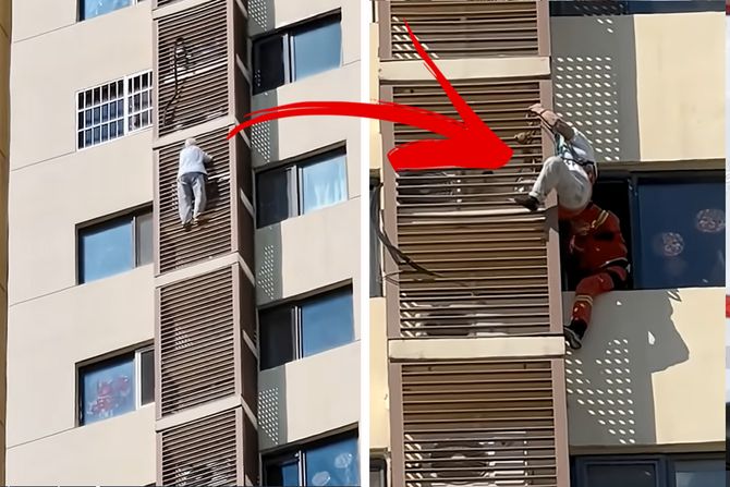Neverovatna scena je, navodno, zabeležena u Pekingu, početkom aprila, a u centru pažnje je 89-godišnja penzionerka koja je odlučila da se spusti niz spoljašnji zid solitera, u kojem je živela, pošto je ostala zarobljena u stanu.