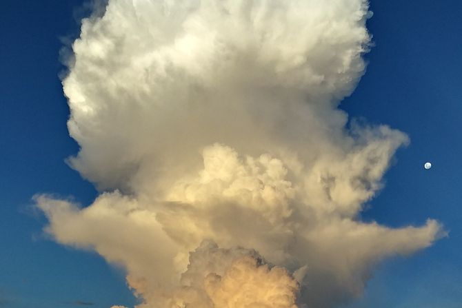 "Topao vazduh je lakši od hladnog vazduha. Njegov izlazak u srednje slojeve atmosfere može se videti u obliku oblaka pečurke. Ova atmosferska pojava se naziva inverzija, ili oblak nakovnja. Ovo je posebna vrsta kumulonimbusa, koji se penje na visinu od oko 12 do 15 kilometara, a zatim počinje da se zamagljuje", rekao je portparol.