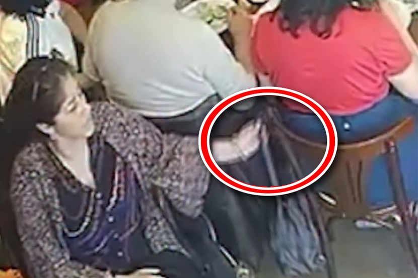Jedna žena, koja je očigledno vešto savladala veštine krađe, snimljena je nadzornom kamerom dok je sedela iza porodice koja je u miru uživala u ručku u restoranu. Pratila je priliku dok niko nije obraćao pažnju. Polako i nenametljivo skida ranac sa stolice, stavlja ga u veću torbu koju je nosila sa sobom, i potom odlazi kao da se ništa nije dogodilo – bez stida, bez žurbe, gotovo profesionalno.