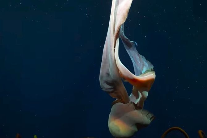 Istraživači su snimili i džinovsku fantomsku meduzu (Stygiomedusa gigantea), čiji su pokreti u dubokom moru delovali kao “igra”. Njihovo telo može da naraste do 10 metara, što je približno dužini školskog autobusa!